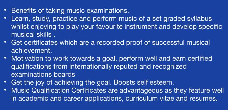 Examination courses for all ages and all levels from beginner to Diplomas for Piano, Guitar, Brass,Woodwind and more for:-